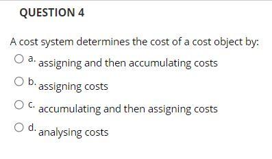 A cost accounting sys-tem collects and classifies costs and assigns them to cost objects. A cost system determines the cost of a cost ob 1. In determining the cost of an object a cost system accumulates costs before assigning to cost units.